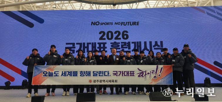 (누리일보) 광주광역시체육회(회장 전갑수)는 7일 오전 10시 충북 진천국가대표선수촌 벨로드롬에서 열린 ‘2026년 국가대표선수단 훈련개시식’에 전갑수 체육회장 등 임직원이 참석해 국가대표선수들의 선전을 기원하고 광주 소속 선수들을 격려했다고 밝혔다.