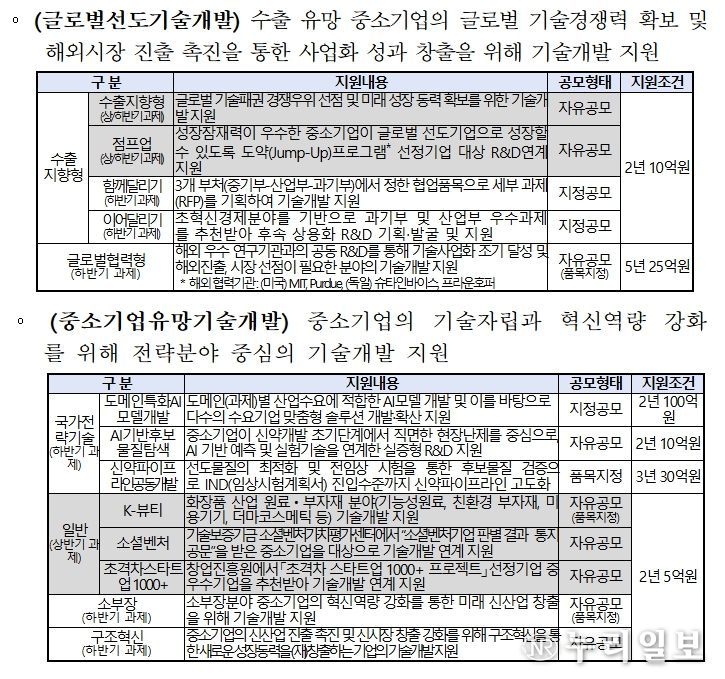 신설된 ‘점프업 연계형’은 중기부의 ‘도약(Jump-Up) 프로그램’ 선정 기업이 글로벌 선도기업으로 도약할 수 있도록 돕는다. 상반기 중 5개사를 선정해 2년간 최대 10억원의 R&D 비용을 연계 지원한다.