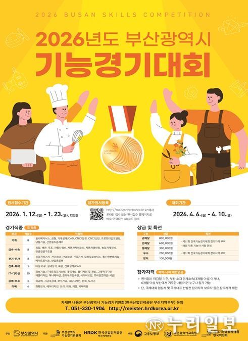 (누리일보) 부산시 기능경기위원회는 '2026년도 부산시 기능경기대회'에 참가할 숙련기술인을 모집한다고 밝혔다.