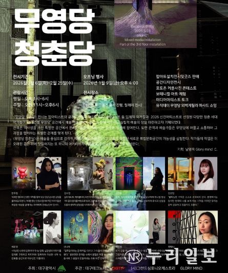 이번 ‘무영당 청춘당’ 전시는 대구시와 지역 문화예술가와의 협업을 통해 2026년 신진 아티스트로 선정된 청춘 세대 작가들이 무영당이라는 공간을 매개로 만나 교류하는 실험적 예술의 장으로 기획됐다.