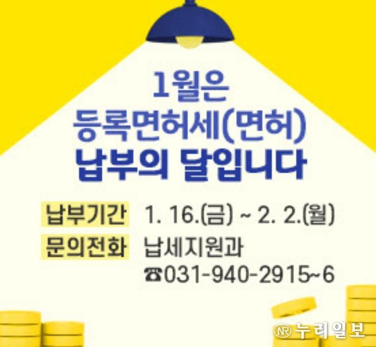 파주시 관계자는 “등록면허세(면허)는 비교적 소액이어서 납부를 놓치는 경우가 많다”라며, “납부기한이 경과하면 부과 금액의 3%에 해당하는 납부지연 가산세가 추가되므로 반드시 기한 내 납부해 주시길 바란다”라고 당부했다.