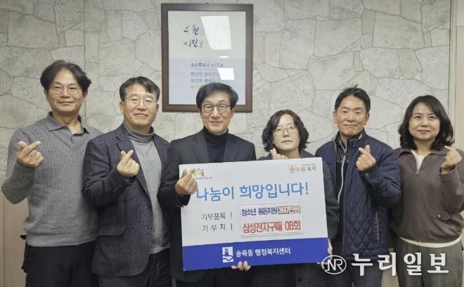 (누리일보) 수원시 장안구 송죽동은 지난 15일 삼성전자 구매OB회와 함께하는 ‘청소년 용돈지원사업’ 후원금 전달식을 개최했다고 밝혔다.