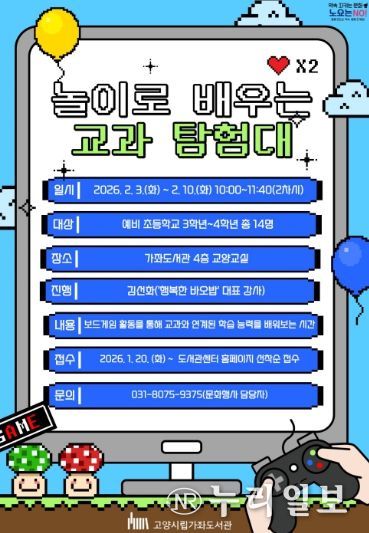 (누리일보) 고양특례시 가좌도서관은 2월 3일부터 방학특강 프로그램 ‘놀이로 배우는 교과 탐험대’을 운영한다.