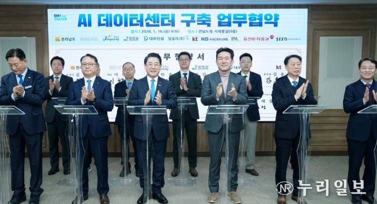 (누리일보) 전라남도는 16일 장성군·강진군, 민간 참여 기관과 함께 ‘AI 데이터센터 구축을 위한 업무협약’을 했다.