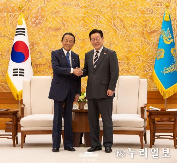 (누리일보) 이재명 대통령은 16일 16시부터 약 30분간 '서울-도쿄 포럼' 참석차 방한한 아소 다로(麻生 太郎) 전 일본 총리를 접견하고, 이번 주 진행된 나라(奈良) 방문(1.13.-14.)과 한일 정상회담 결과 등에 대해 이야기를 나누었다.