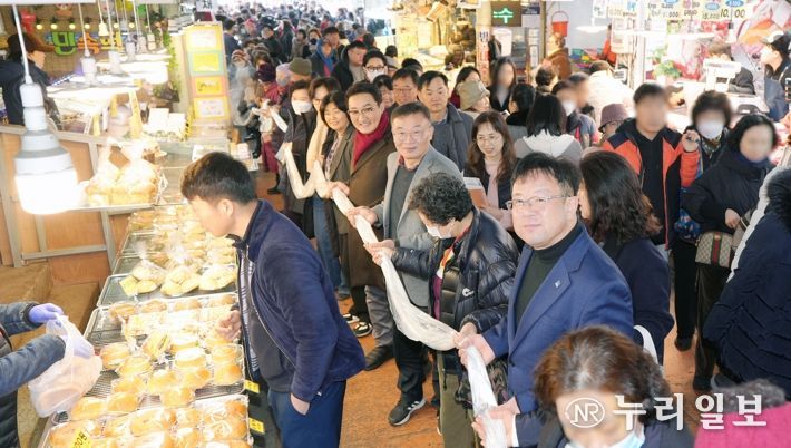 (누리일보) 수원 못골종합시장이 새해를 맞아 16일 전통시장 상인과 시민이 함께하는 ‘가래떡 나눔 행사’를 열었다.