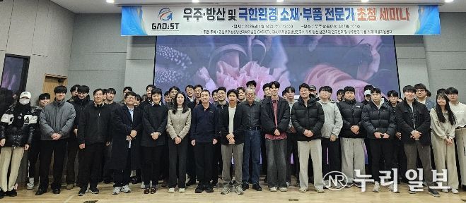 (누리일보) 경상국립대학교 경남우주항공방산과학기술원(GADIST) 소속 ‘우주·방산 첨단소재 연구센터’와 ‘우주환경 부품·소재 개발지원센터’는 1월 14일 우주항공산학협력관에서 ‘우주·방산 및 극한환경 소재·부품 분야 전문가 초청 세미나’를 개최했다.