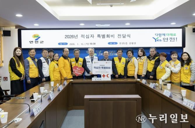 (누리일보) 연천군은 지난 15일 군청 상황실에서 연천군수, 대한적십자사 경기도지사 우광호 사무처장, 연천군협의회 금가현 회장 및 회원 등이 참석한 가운데 2026년 적십자 특별회비 전달식을 개최했다.