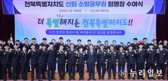 (누리일보) 전북특별자치도는 19일 도청 4층 대회의실에서 2026년 신임 소방공무원 임명장 수여식을 열고, 도민의 생명과 안전을 지킬 신임 소방공무원 45명을 공식 임명했다.