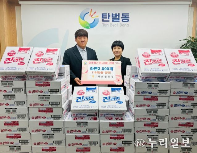 (누리일보) 에스엠조경 임순옥 대표는 19일 광주시 탄벌동 행정복지센터에 지역 내 취약계층의 겨울철 생활 지원을 위한 라면 2천개를 기탁했다.