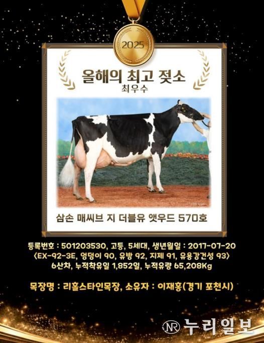 (누리일보) 포천시는 관내 낙농농가인 리홀스타인목장(대표 이재홍)이 2025년 ‘올해의 최고 젖소’를 배출했다고 밝혔다.