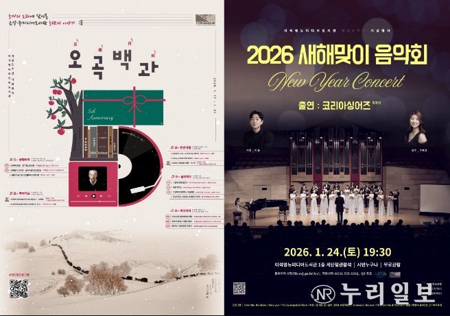 대표 프로그램으로는 오는 24일 오후 7시 30분, 도서관 1층 계단형 관람석에서 열리는 ‘2026 새해맞이 음악회’가 있다. 음악회에는 코리아싱어즈 합창단, 오카리나 연주자 김욱, 클라리네티스트 김예원 등이 출연해 새해의 희망을 전하는 공연을 선보인다.
