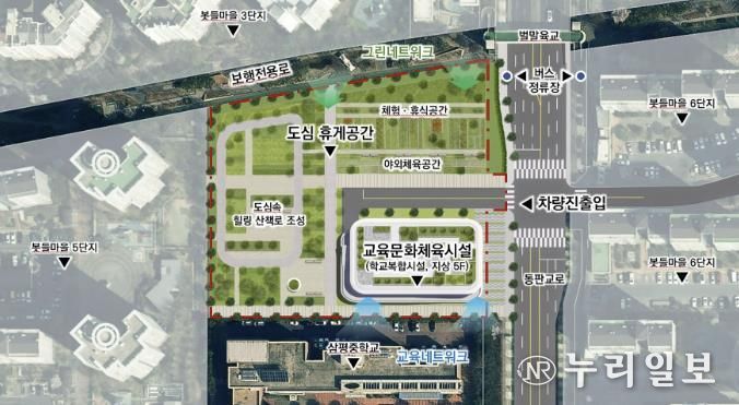 수립된 기본 구상안에는 연면적 약 15,000㎡ 규모의 교육·문화·체육시설을 중심으로 도서관, 수영장, 문화센터, 주차장을 조성하고, 편익시설과 산책로가 어우러진 도심 휴게공간을 함께 마련하는 내용이 담겼다.