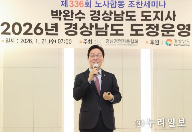 (누리일보) 경상남도는 21일 오전 창원 인터내셔널호텔에서 열린 ‘제336회 노사합동 조찬세미나’에서 도정 비전과 주요 정책 방향을 공유했다.