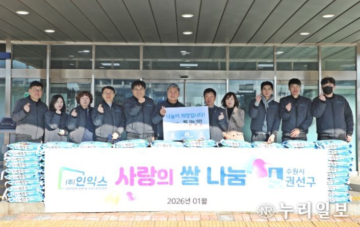 (누리일보) 수원시 권선구는 21일 ㈜인익스에서 설 명절을 맞이하여 후원한 백미(10kg) 100포에 대한 전달식을 진행했다.