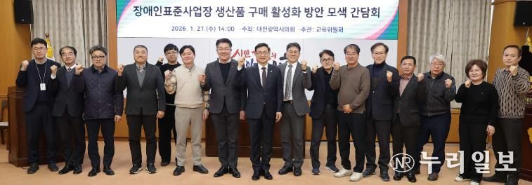 (누리일보) 대전시의회는 21일 시의회 3층 소통실에서 '장애인표준사업장 생산품 구매 활성화 방안 모색 간담회'를 개최하고, 공공기관의 장애인표준사업장 생산품 구매율을 높이기 위한 정책적·제도적 개선 방안을 논의했다.