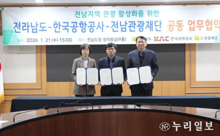(누리일보) 전라남도는 21일 한국공항공사, 전남관광재단과 함께 무안국제공항과 연계한 여행업계 지원 및 전남 관광 활성화 업무협약을 했다.