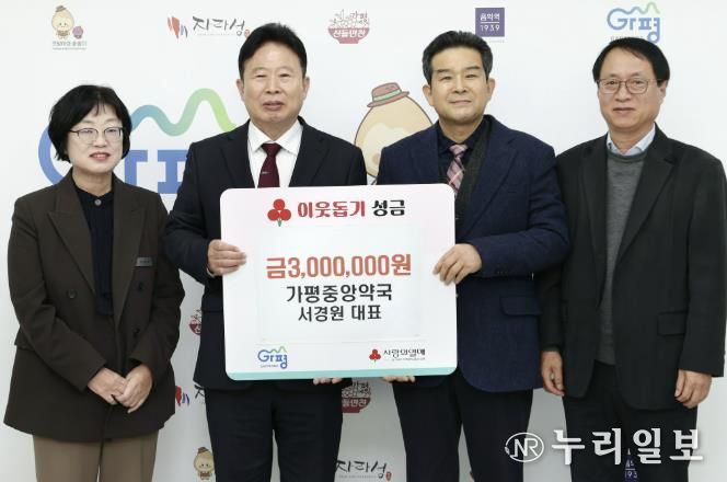 (누리일보) 가평중앙약국 서경원 대표는 21일 이웃돕기 성금 300만원을 가평군에 기탁하며 지역사회 나눔 실천에 동참했다.