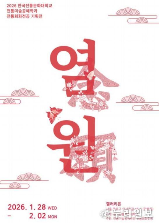 (누리일보) 국가유산청 한국전통문화대학교는 1월 28일부터 2월 2일까지 갤러리 은(서울 종로구)에서 전통미술공예학과 전통회화전공 재학생 42명과 교수진이 전통기법과 재료를 바탕으로 제작한 전통회화 작품들을 선보이는 기획전시 '염원(念願)'을 개최한다.