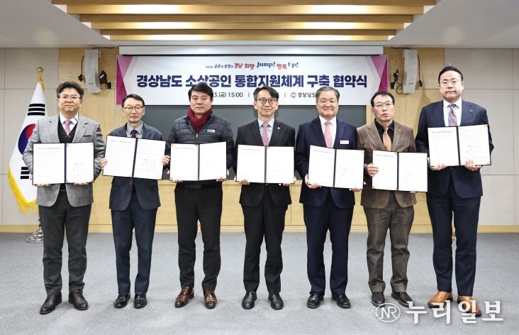 (누리일보) 경상남도는 23일 도청 도정회의실에서 도내 소상공인 지원 6개 유관기관‧단체와 함께 소상공인 통합지원체계 구축을 위한 업무협약(MOU)을 체결하고, 소상공인에 대한 원스톱 지원체계를 본격 추진한다고 밝혔다.