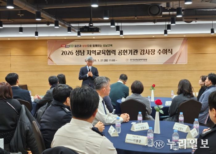 (누리일보) 경기도성남교육지원청은 1월 27일 스카이파크 호텔에서 '성남 지역교육협력 공헌기관 감사장 수여식'을 개최하여 성남교육 발전을 위해 협력해 온 지역교육협력기관 22곳에 감사의 뜻을 전했다.