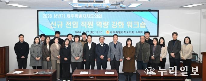 (누리일보) 제주특별자치도의회 의회운영위원회는 지난 1월 27일, 도의회 의사당 소회의실에서 2026년 상반기 정기인사로 전입한 직원 및 실무 역량 배양이 필요한 직원들을 대상으로 ‘역량 강화 워크숍’을 개최했다.