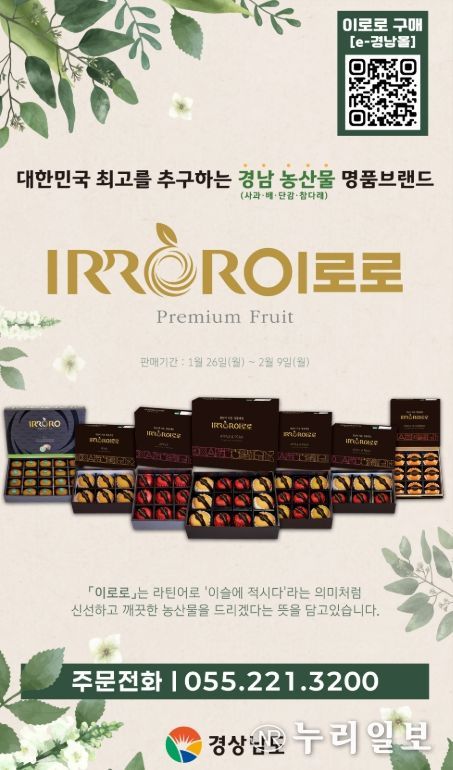 (누리일보) 경상남도는 설 명절을 맞아 2월 9일까지 경남 명품과일 ‘이로로’ 선물 세트 특판을 진행한다고 밝혔다.