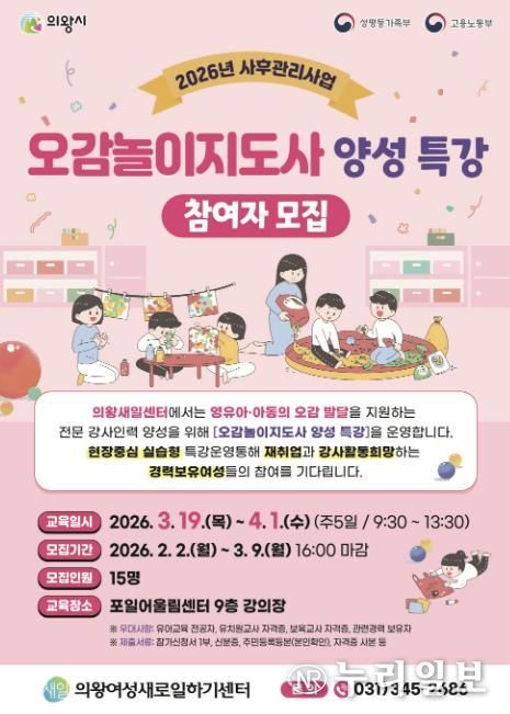 (누리일보) 의왕시 여성새로일하기센터가 '오감놀이지도사 양성 특강'의 교육생을 모집한다.