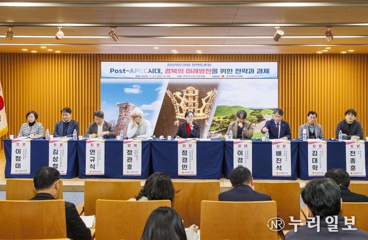 (누리일보) 경상북도의회는 지난 27일 경상북도청 다목적홀에서 APEC 및 문화관광분야 전문가 및 관계공무원 등과 함께 ‘Post-APEC시대, 경북의 미래발전을 위한 전략과 과제’라는 주제로 정책토론회를 개최했다.