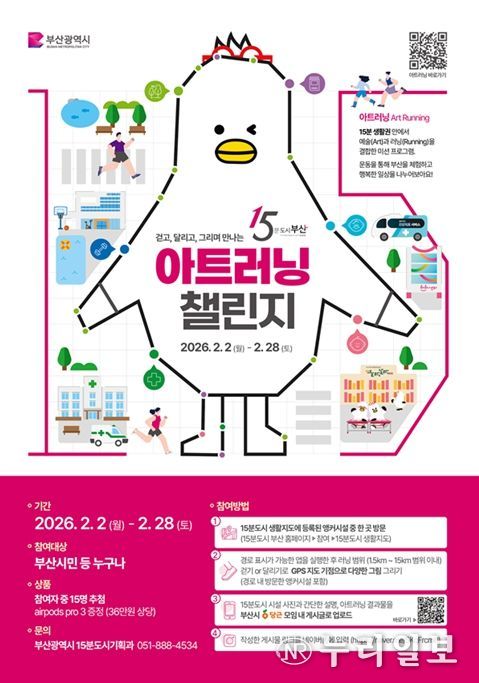 박형준 시장은 “15분도시 부산은 시민 누구나 동네에서 일상과 여가, 건강을 함께 누릴 수 있는 도시”라며, “이번 15분도시 부산 아트러닝 챌린지를 통해 시민들이 가까운 생활권 안에서 건강한 활동을 즐기고, 동네 곳곳의 매력을 새롭게 발견하는 계기가 되길 바란다”라고 전했다.