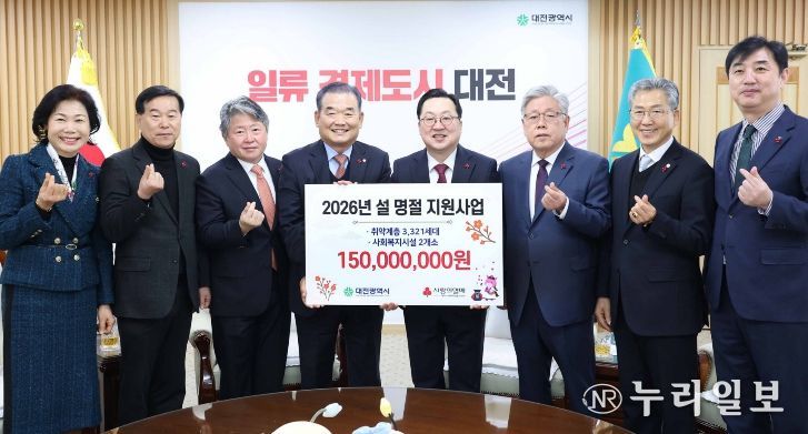 (누리일보) 대전시는 2026년 설 명절을 앞두고 대전사회복지공동모금회로부터 저소득 소외계층을 위한 성금 1억 5천만 원을 기탁받았다.