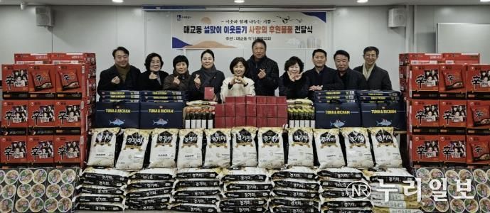 (누리일보) 지난 2일 수원시 팔달구 매교동은 설 명절을 맞이하여 관내 소외되는 어려운 이웃이 없도록 설명절 이웃나눔 후원물품 전달식을 가졌다.