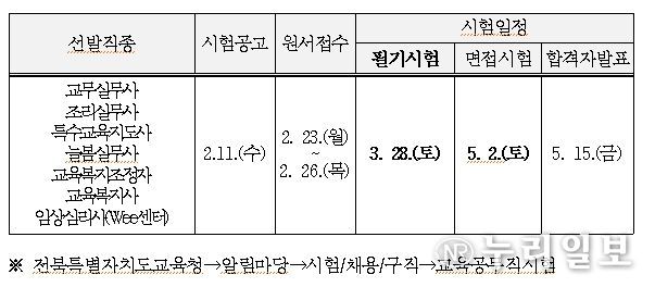 (누리일보) 전북특별자치도교육청은 교육공무직원 채용시험을 준비하는 응시자의 편의를 위해 2026년 교육공무직원 채용시험 일정을 4일 누리집을 통해 사전 안내했다.