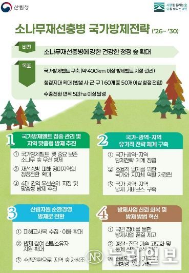 이번에 마련된 ‘소나무재선충병 국가방제전략’은 2026년부터 2030년까지 다음의 네 가지 주요 내용을 중점적으로 추진한다.