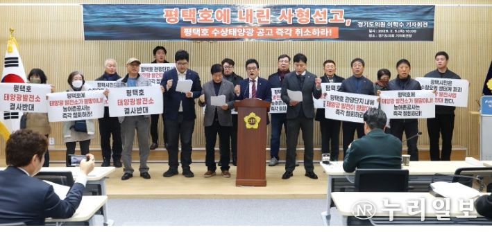 (누리일보) 경기도의회 이학수 의원(국민의힘, 평택5)은 5일(목) 경기도의회 기자회견장에서 기자회견을 열고 한국농어촌공사가 발표한 평택호 수상태양광 사업 공고의 즉각적인 취소를 강력히 요구했다.