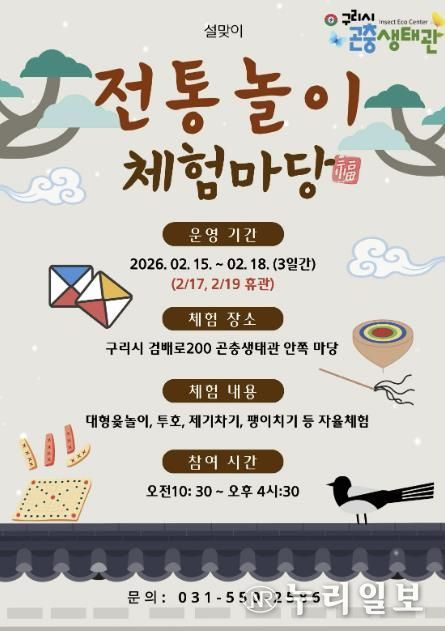 (누리일보) 구리시는 민족 최대의 명절 설을 맞아 오는 2월 15일부터 18일까지 구리시 곤충생태관에서 ‘2026 설맞이 전통 놀이 체험 마당’을 운영한다고 밝혔다.