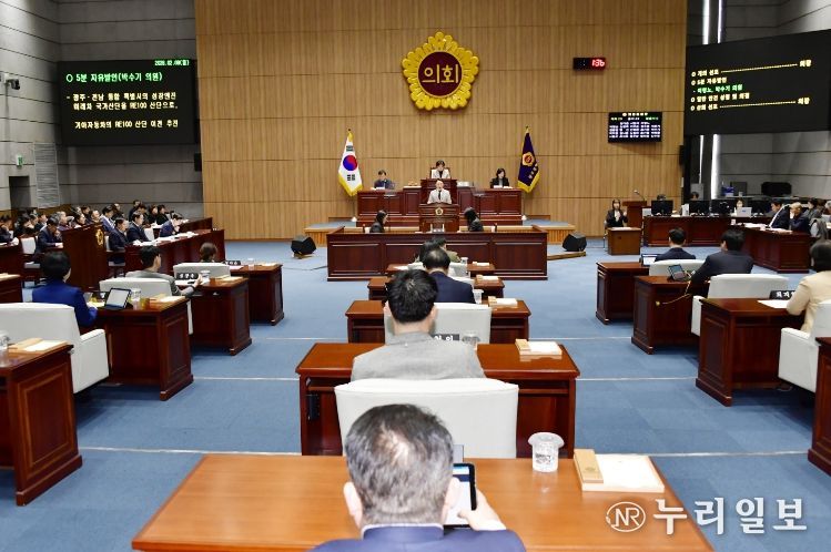 한편, 이날 본회의에서는 ▲이명노 의원은 “시민을 지키는 소방공무원, 우리가 지킵시다” ▲박수기 의원은 “광주전남 행정통합의 실리 – 미래차 국가산단을 RE100 산단으로”라는 주제로 5분자유발언이 이뤄졌다.
