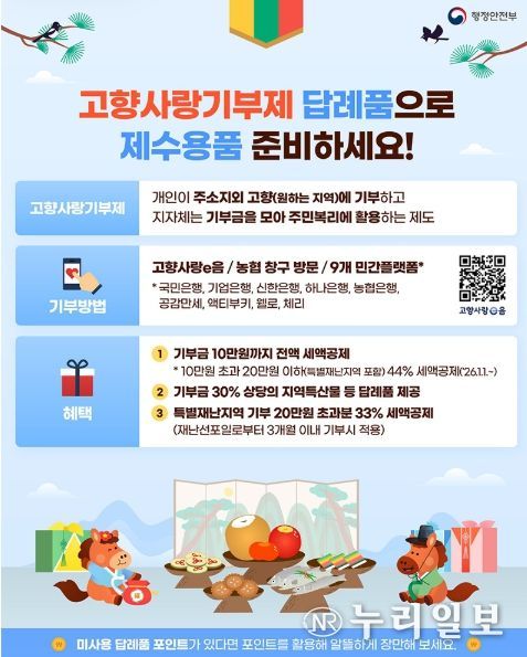 (누리일보) 고향사랑기부제 답례품으로 제수용품 준비하세요!
