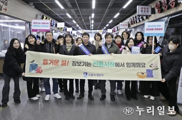 (누리일보) 수원시 권선구는 지난 9일 설 명절을 맞아 권선종합시장을 찾아 지역경제를 살리기 위한 ‘전통시장 장보기 캠페인’을 실시했다.