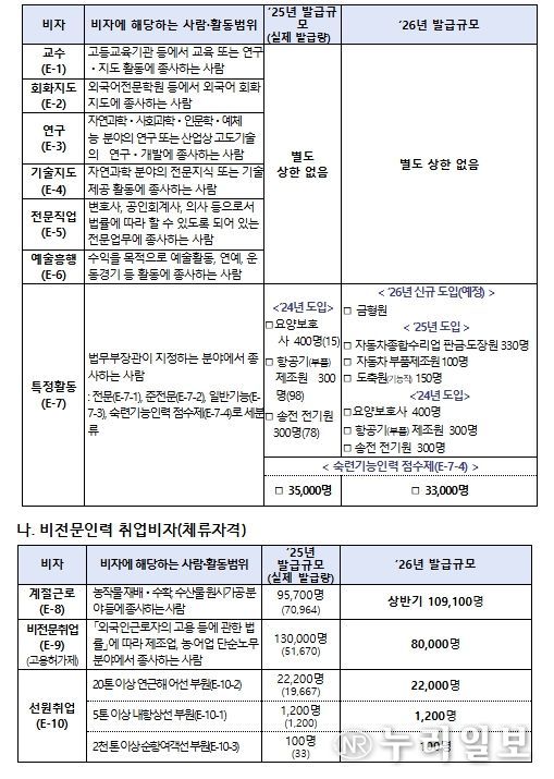 (누리일보) 법무부는 외국인 유입이 지역경제와 국민 일자리에 미치는 영향을 종합적으로 분석한 결과를 바탕으로, 관계부처와의 협의를 거쳐 2026년 연간 비자 발급규모를 공표했다.