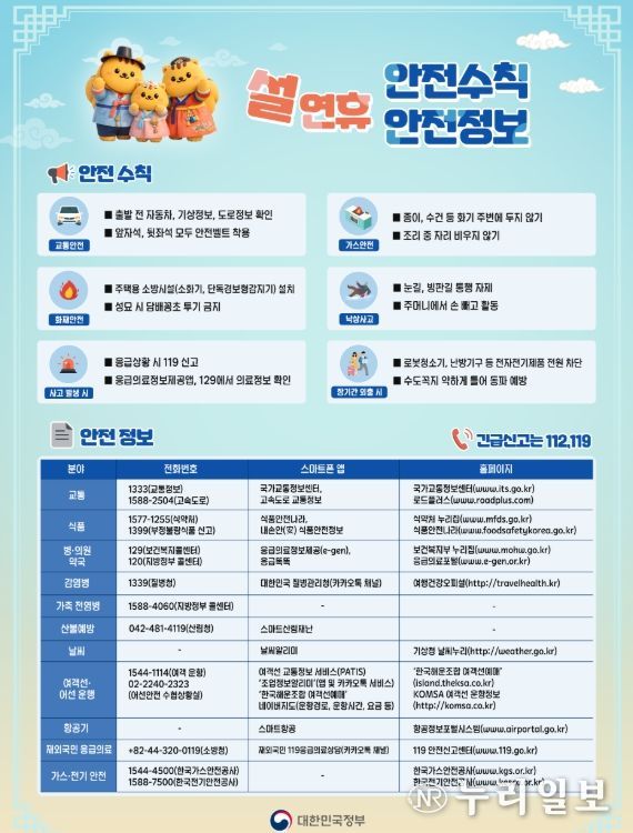 (누리일보) 행정안전부는 국민께서 안전하고 즐거운 설 명절을 보낼 수 있도록 중앙 및 지방정부 합동으로 ‘설 연휴 안전관리 대책’을 추진한다.