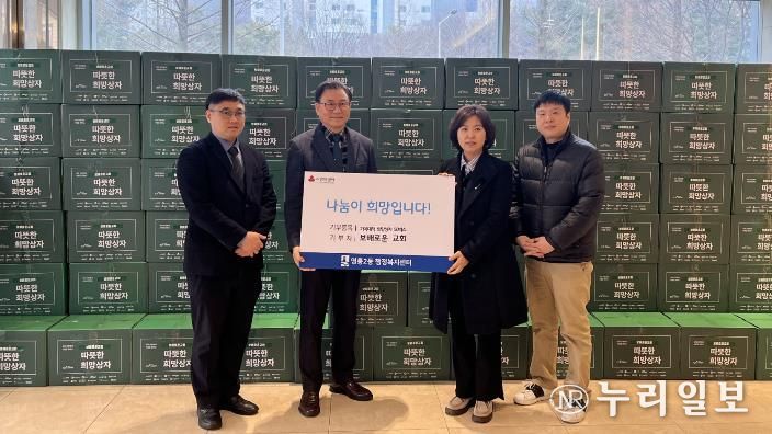 (누리일보) 수원시 영통구 영통2동은 지난 10일 보배로운 교회가 설 명절을 맞이해 주위의 어려운 이웃들에게 전달해달라며 기아대책 희망상자(생활필수품 20여 종) 50박스를 영통2동 행정복지센터에 기탁했다고 밝혔다.