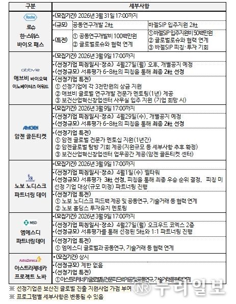 (누리일보) 보건복지부와 한국보건산업진흥원은 제약바이오 분야 글로벌 오픈이노베이션 활성화를 위해 ‘2026년 글로벌 선도기업 협업 프로그램(‘K-바이오파마 넥스트 브리지’) 참가기업을 모집한다고 밝혔다.