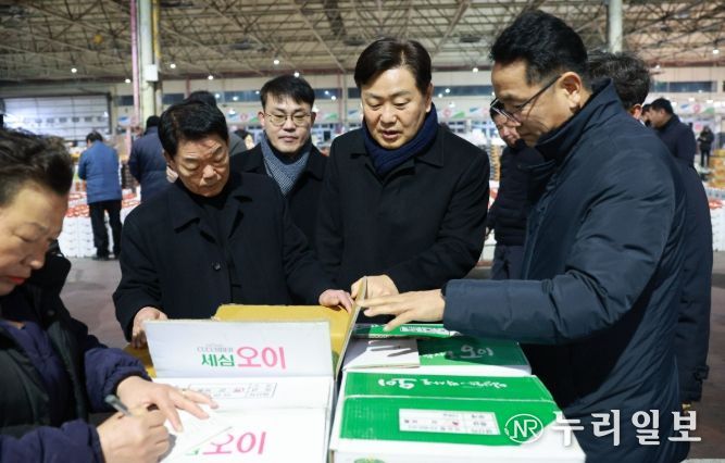 김 지사는 사과, 배, 딸기 등 명절 수요가 집중되는 주요 성수품을 중심으로 최근 기상 여건과 작황 영향, 산지 출하 물량 확보 상황, 소비 동향 등을 현장에서 확인하고, 유통 종사자들로부터 시장 운영 여건과 애로사항을 청취했다.