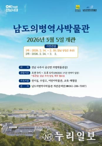 (누리일보) 전라남도는 오는 3월 5일 개관하는 남도의병역사박물관을 설 연휴 등 두 차례 시범운영으로 사전 공개해 전시·시설 전반을 최종 점검하고 관람객 의견을 반영함으로써 ‘의(義) 교육 허브’로서의 완성도를 높일 계획이다.
