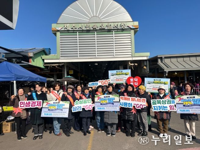 (누리일보) 제주특별자치도는 설 명절을 앞두고 지역 상권 소비 활성화를 위해 12일 오전 제주시 민속오일장에서 ‘소비촉진 캠페인’을 전개했다고 밝혔다.