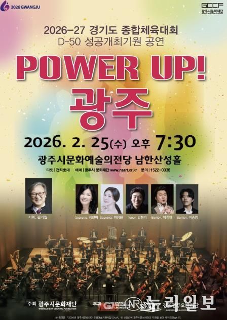 (누리일보) 광주시문화재단은 오는 25일 ‘제72회 경기도체육대회 및 제16회 경기도장애인체육대회 2026 광주’의 성공 개최를 기원하고 대회 개막 50일 전을 기념하기 위한 ‘파워업! 광주’ 공연을 개최한다고 13일 밝혔다.