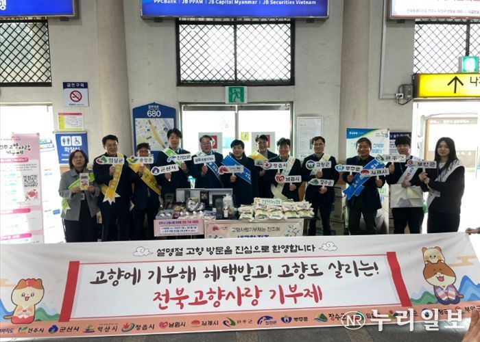 (누리일보) 전북특별자치도는 13일 전주역에서 전주시와 농협중앙회 직원들과 함께 설 명절을 맞아 고향을 찾은 출향민을 대상으로 고향사랑기부제 인식 제고를 위한 합동 홍보 활동을 펼쳤다.