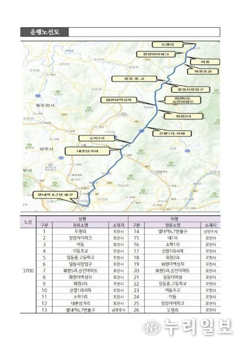 (누리일보) 포천시는 오는 3월 4일부터 경기도 광역 공공버스 신규 노선인 3700번(도평리–별내역)을 정식 운행한다고 밝혔다.