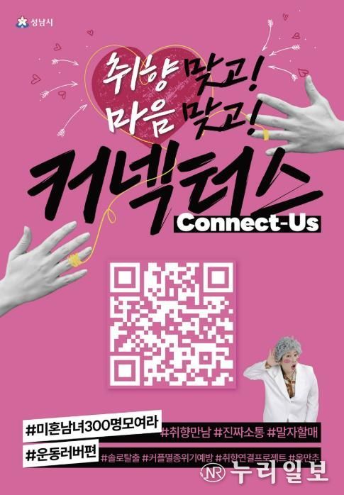 (누리일보) 성남시는 취미나 성향이 비슷한 청년을 연결해 주는 프로그램 ‘커넥터스(Connect-us)’ 참가 희망자 300명(남녀 각 150명)을 오는 3월 13일까지 모집한다.